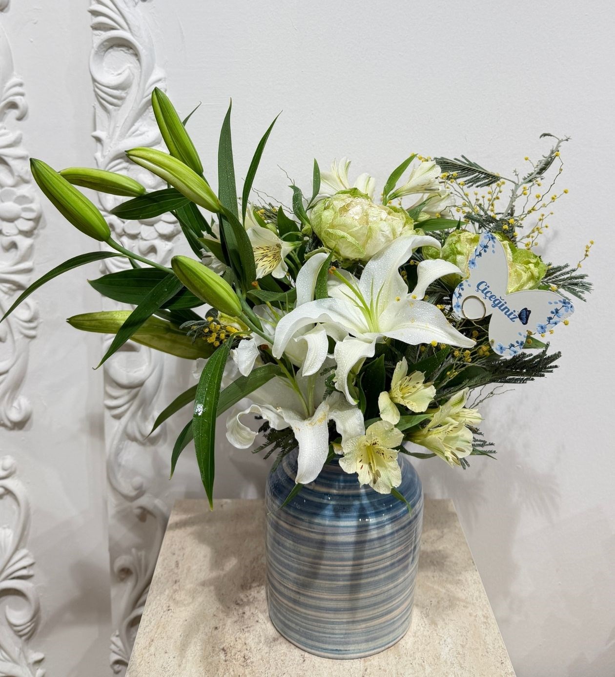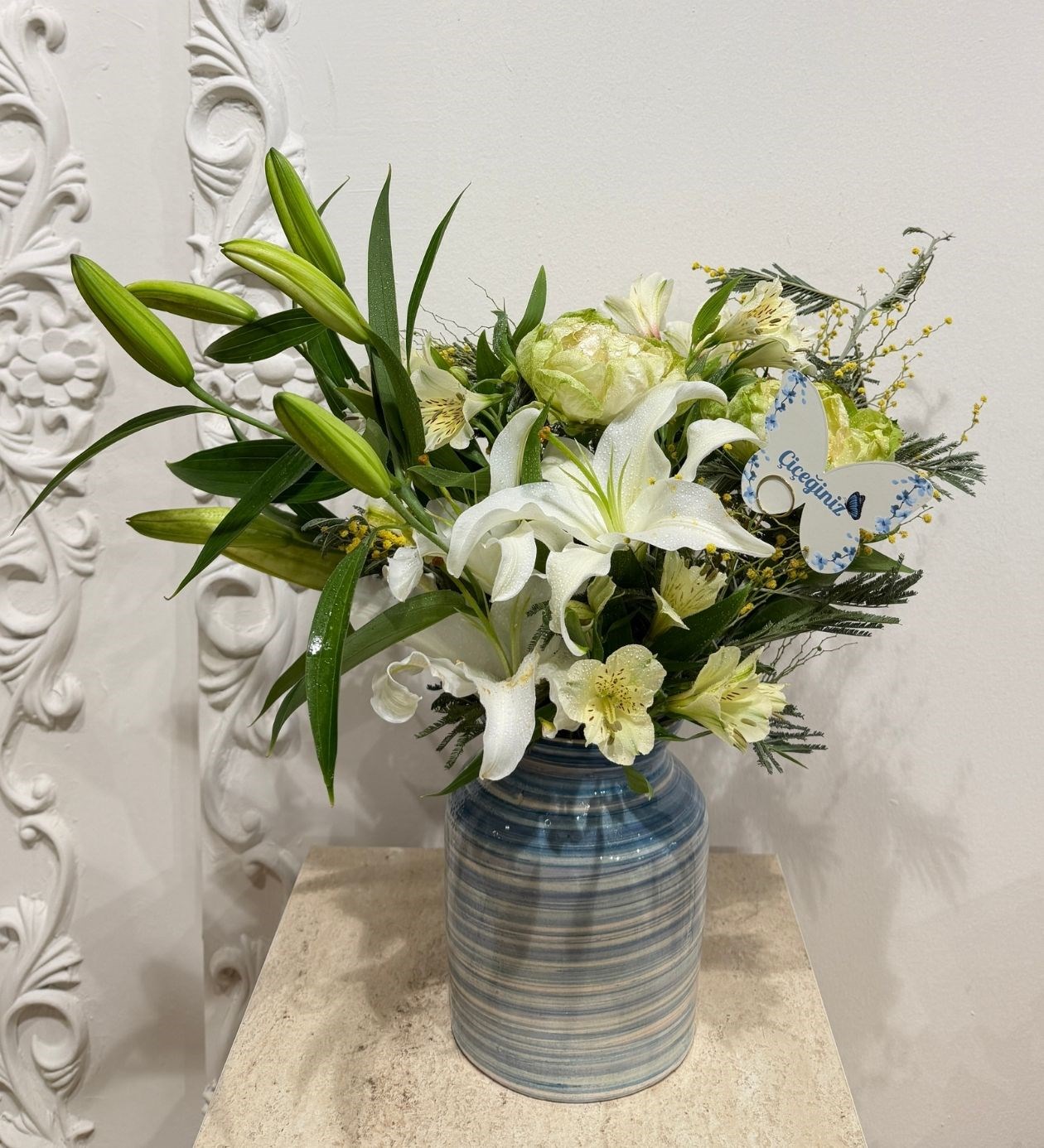 Beyaz Lilyumlu Vazo Aranjamanı