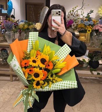Gerberalı Ayçiçekli Buket