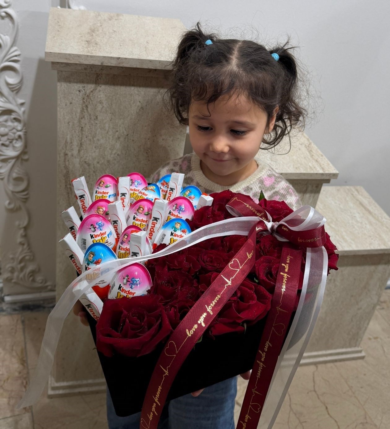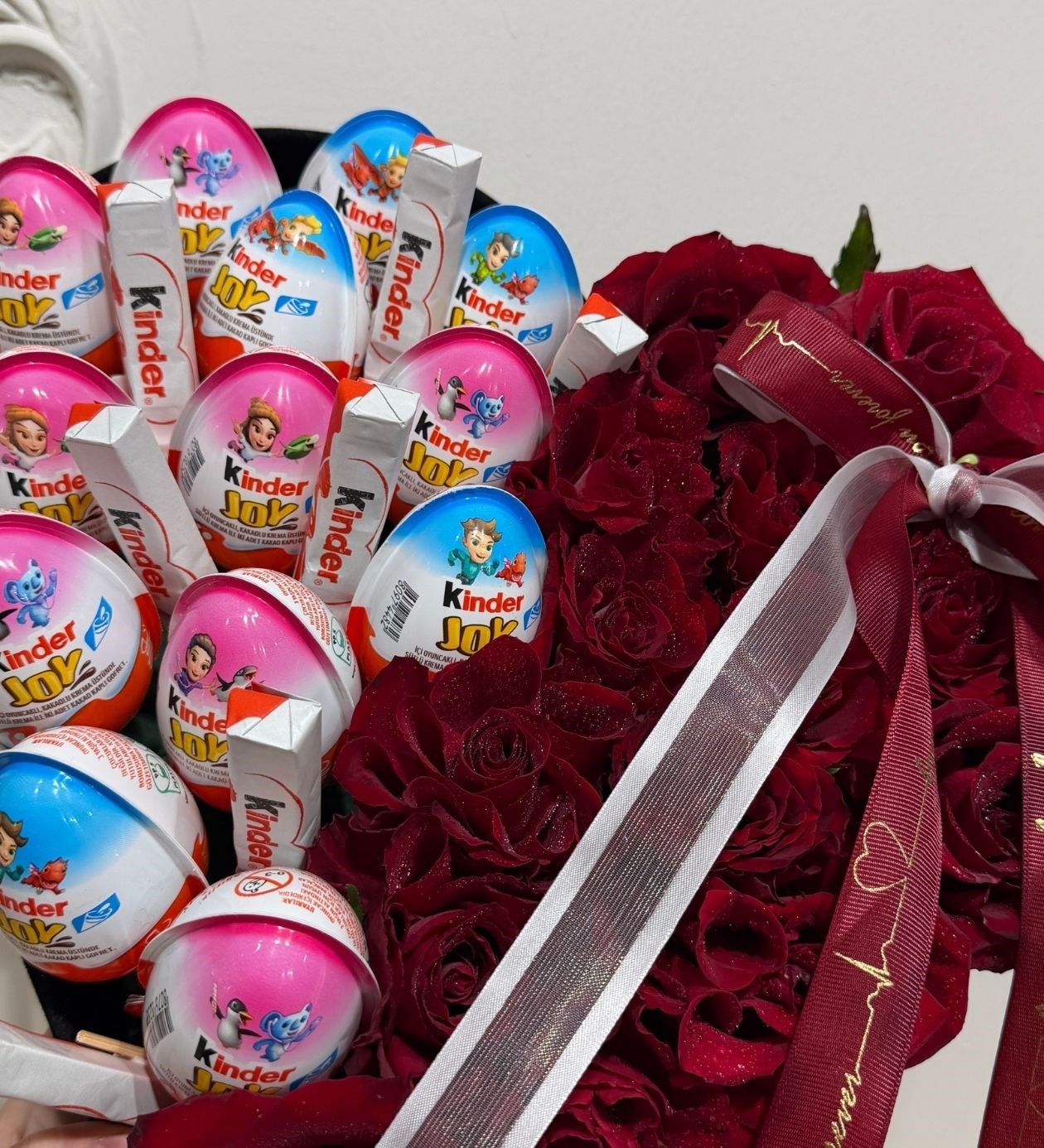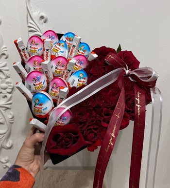 Kinder Çikolatalı Yapay Güllü Kalpli Kutu