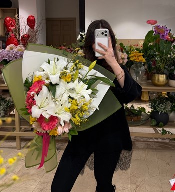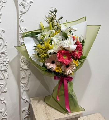 Lilyumlu Mimozalı Gerberalı Buket