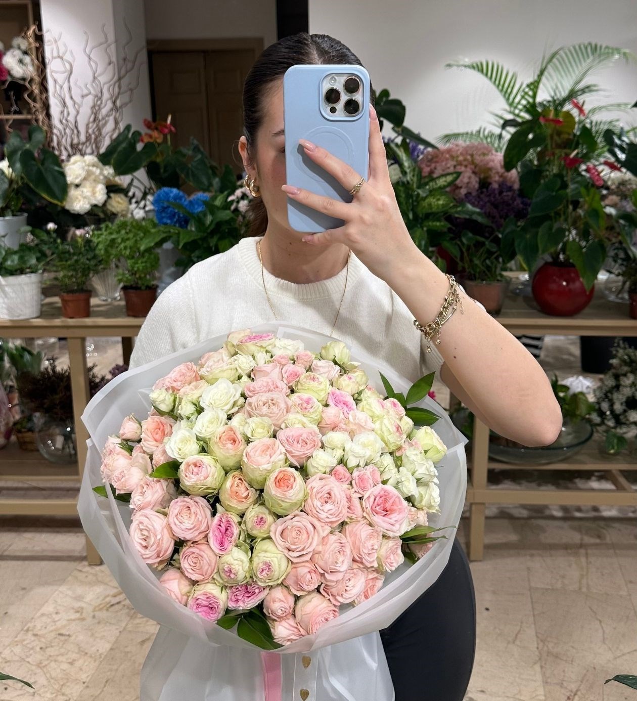 Lüx Pembe Beyaz Çardak Gül Buketi
