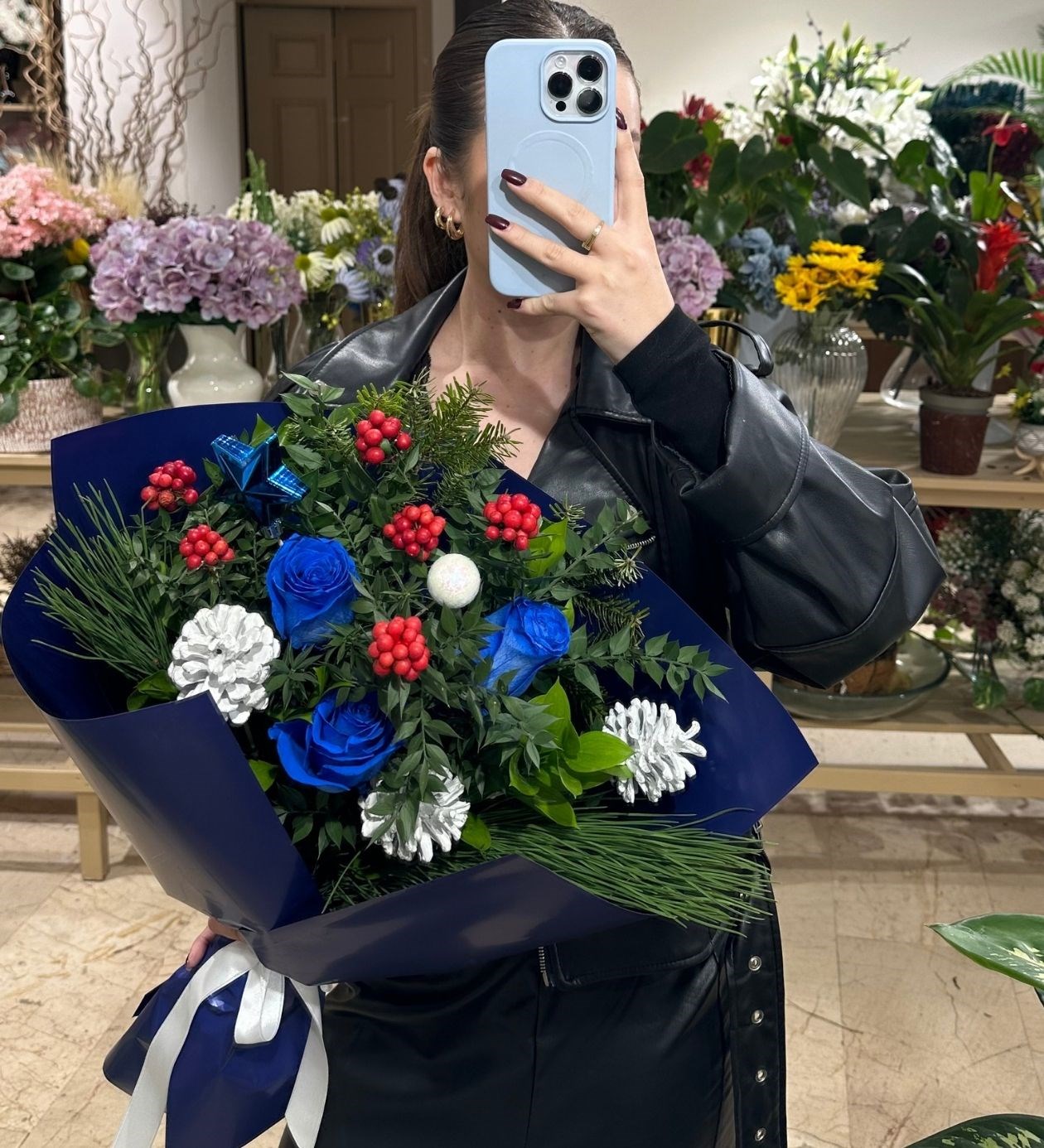 Mavi Güllü Kokina Buketi L Boyut