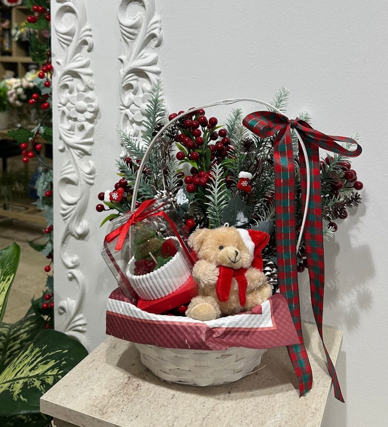 Oyuncaklı Mumlu Yılbaşı Sepeti