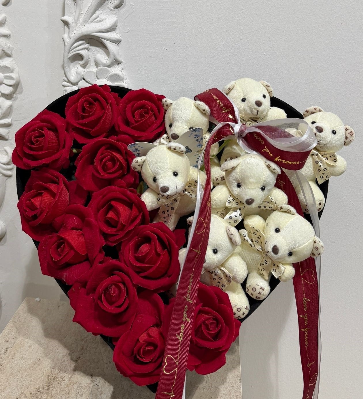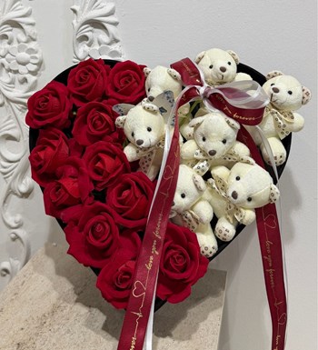 Yapay Güllü Ayıcıklı Kalpli Kutu